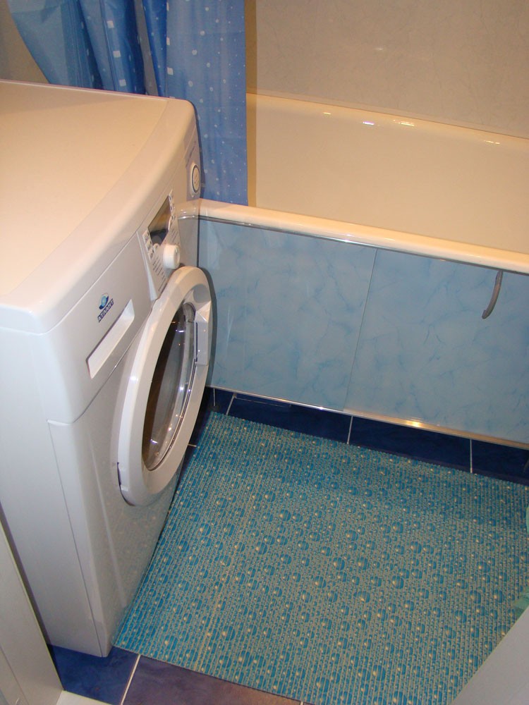 Ванная, выполненная в синих и голубых оттенках. В сочетании с белым это помещение притягивает ощущением чистоты и свежести