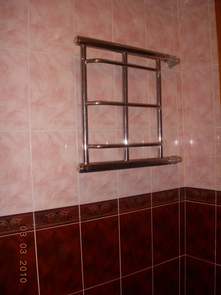 Интерьер фото / Интерьеры из сети; Разное / Санузлы / Душевая комната в цвете заката / Хромированная сушка