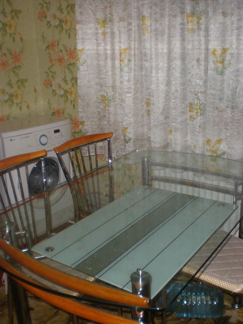 Этот стол я собрал из стекла и из кусочков, которые остались от старой столешницы кухонного гарнитура.