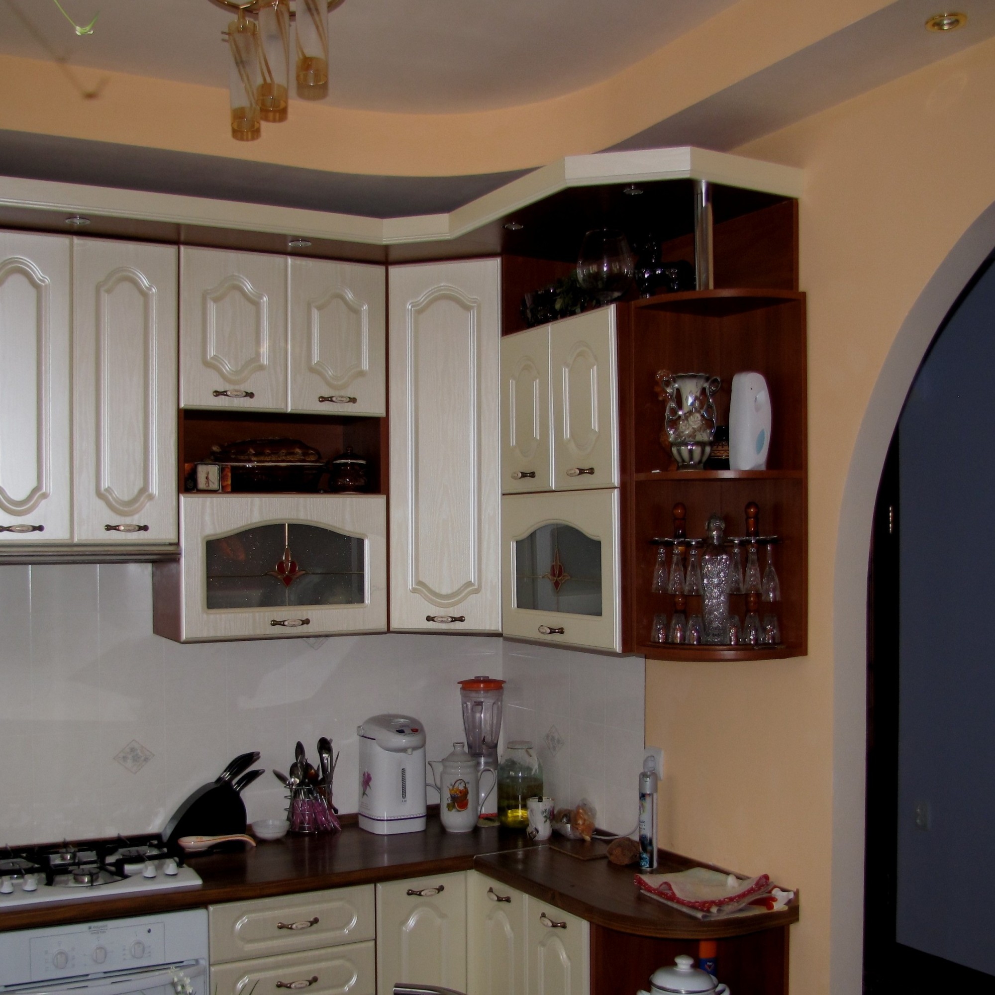 Стойка бар придает положительное настроение всей кухне. Даже в углу помещения он не выглядит лишней.