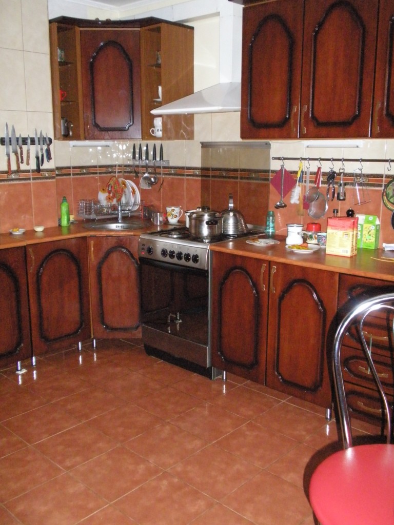 Удобно, что плита находится рядом с раковиной, не надо делать лишних движений во время приготовления пищи.