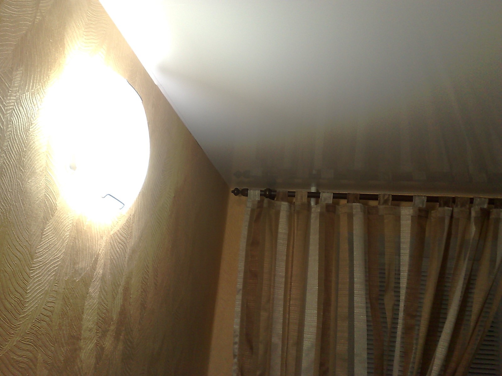 Натяжной потолок и светильник на 2 лампы энергосберигающие.
