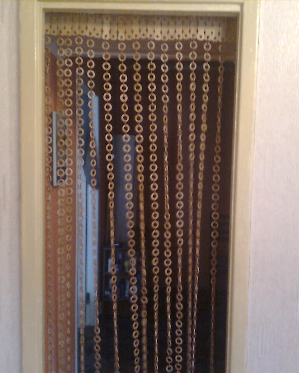 Так как дверь мама категорически отказывается ставить (по ее личным соображениям), мы решили повесить деревянные шторки. Как видите очень красиво убирает пустоту.