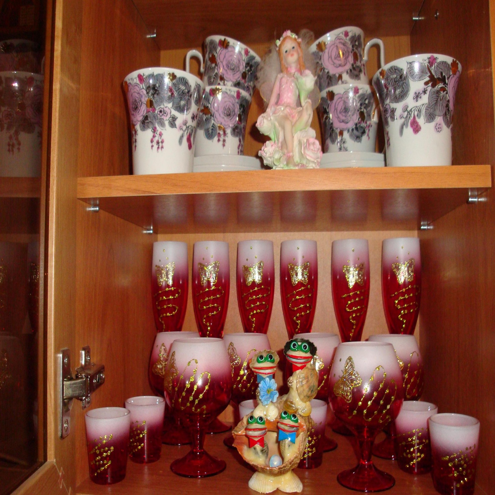 Необыкновенной красоты посуда: для чая, шампанского, вина.