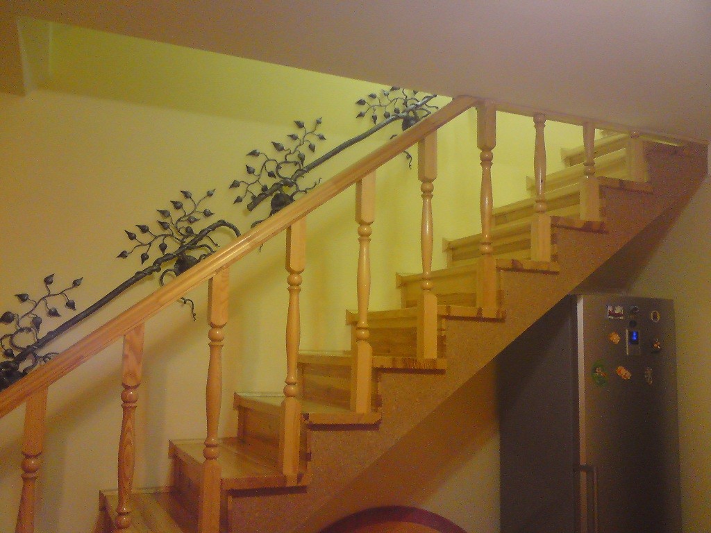 Под лестницей остаётся достаточно места для холодильника и мягкого стула.