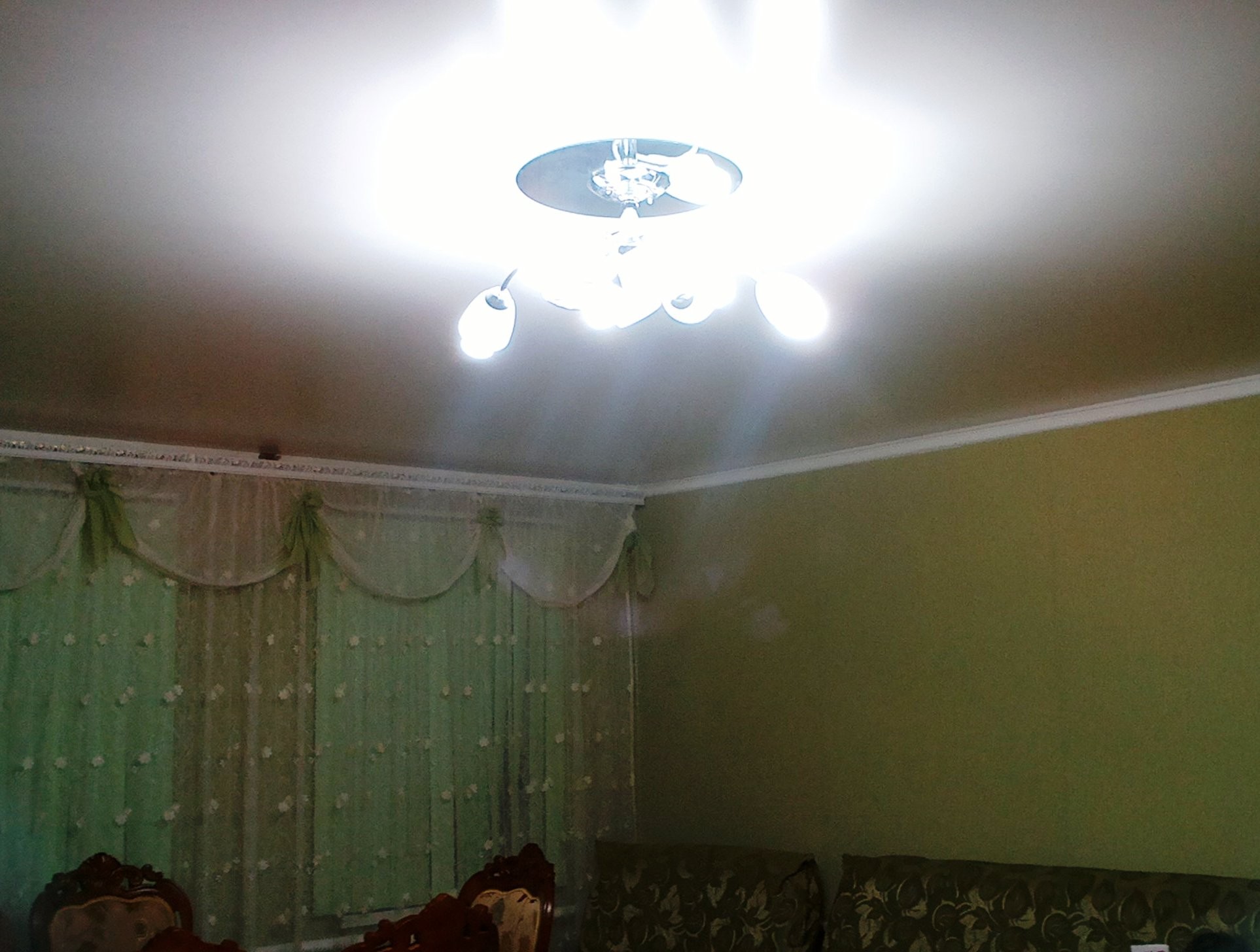 Общий вид нашей гостиной после летнего ремонта.Из кардинальных перемен- натяжной потолок, пол: заменили линолеум на ламинат, недействующие окна превратили в ниши.