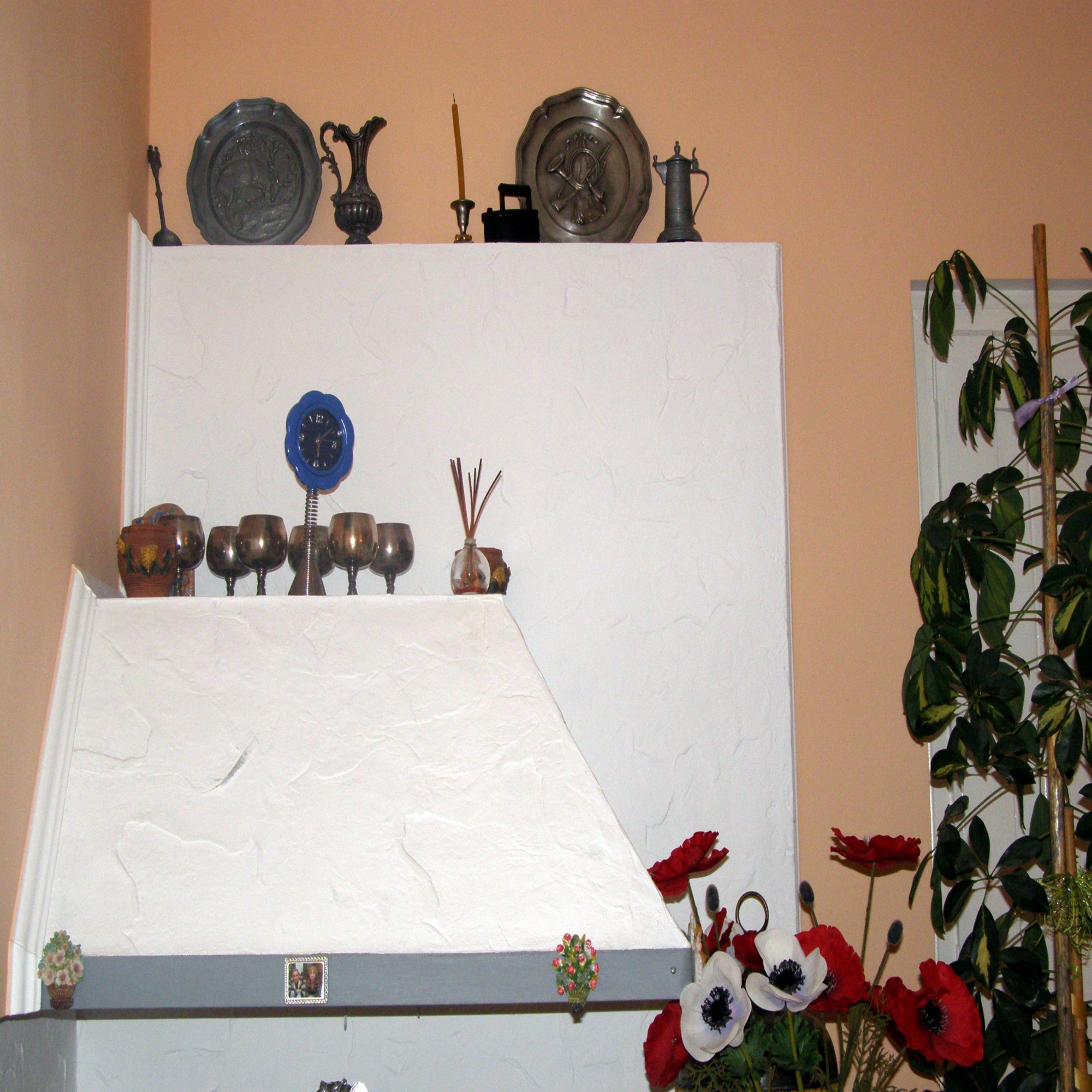 На вытяжке печи - расположилось начало собрания коллекций антикварной посуды. Коллекция прибыла из Западной Европы.
