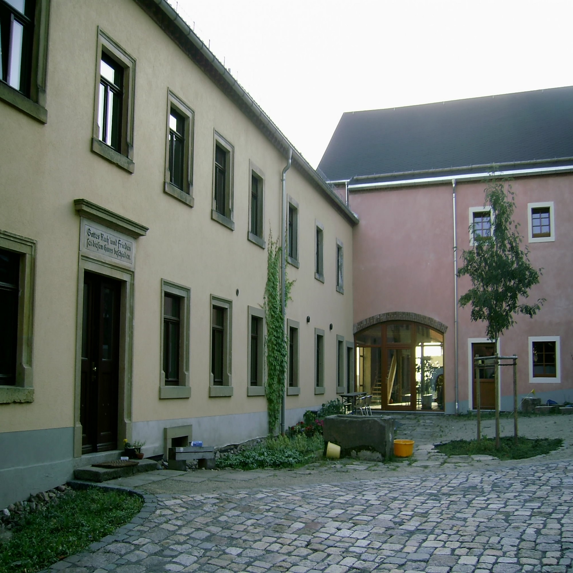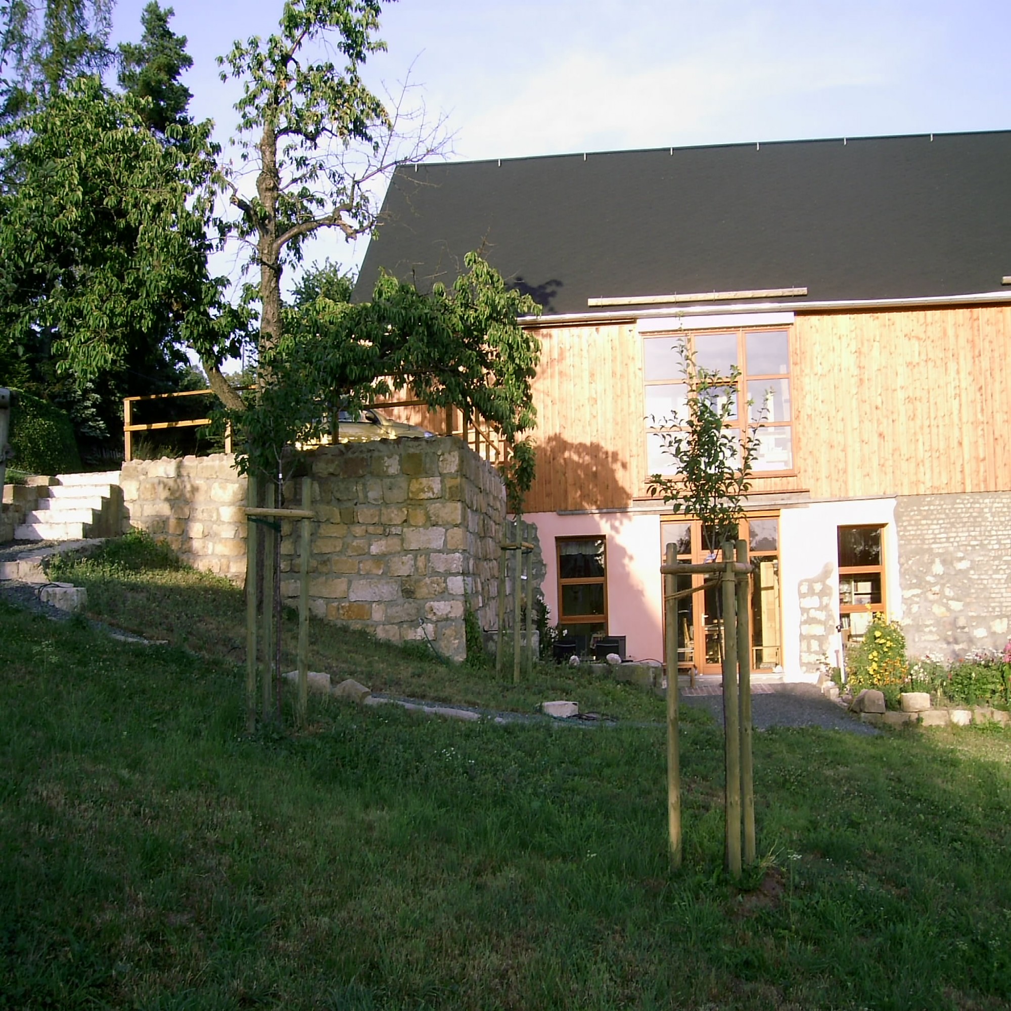 Часть дома. которая видна из сада. В видимой части находиться отдельная квартира.
