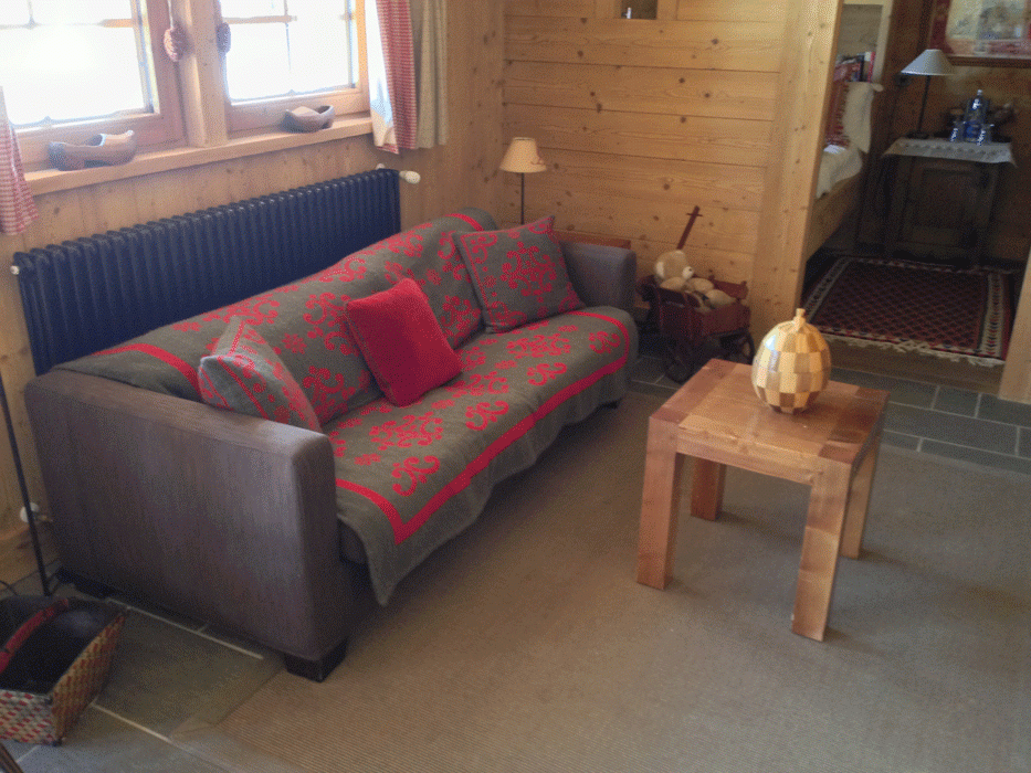 Это, так называемая, собственная гостиная дедушки. Она находится в проходе от дедушкиной спальни к запасной. Здесь есть диван и перед ним небольшой столик.
