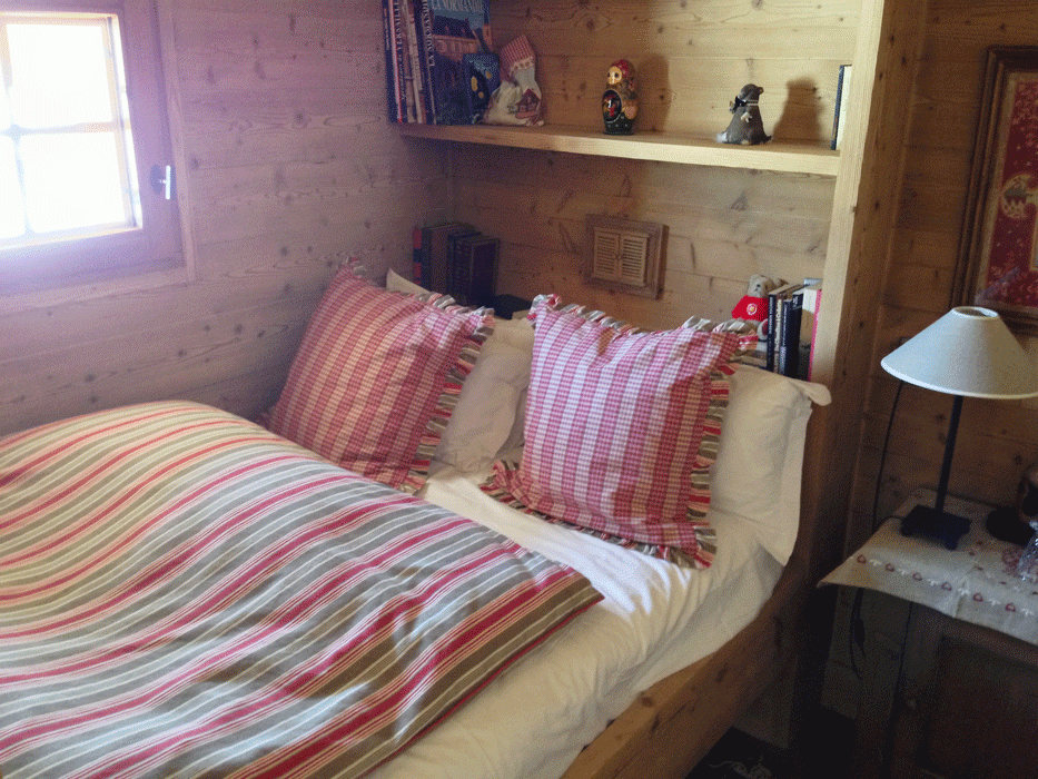 А вот та самая запасная или гостевая спальня. Она небольшая: одноместная кровать, окно, несколько полок над постелью и тумбочка с лампой.