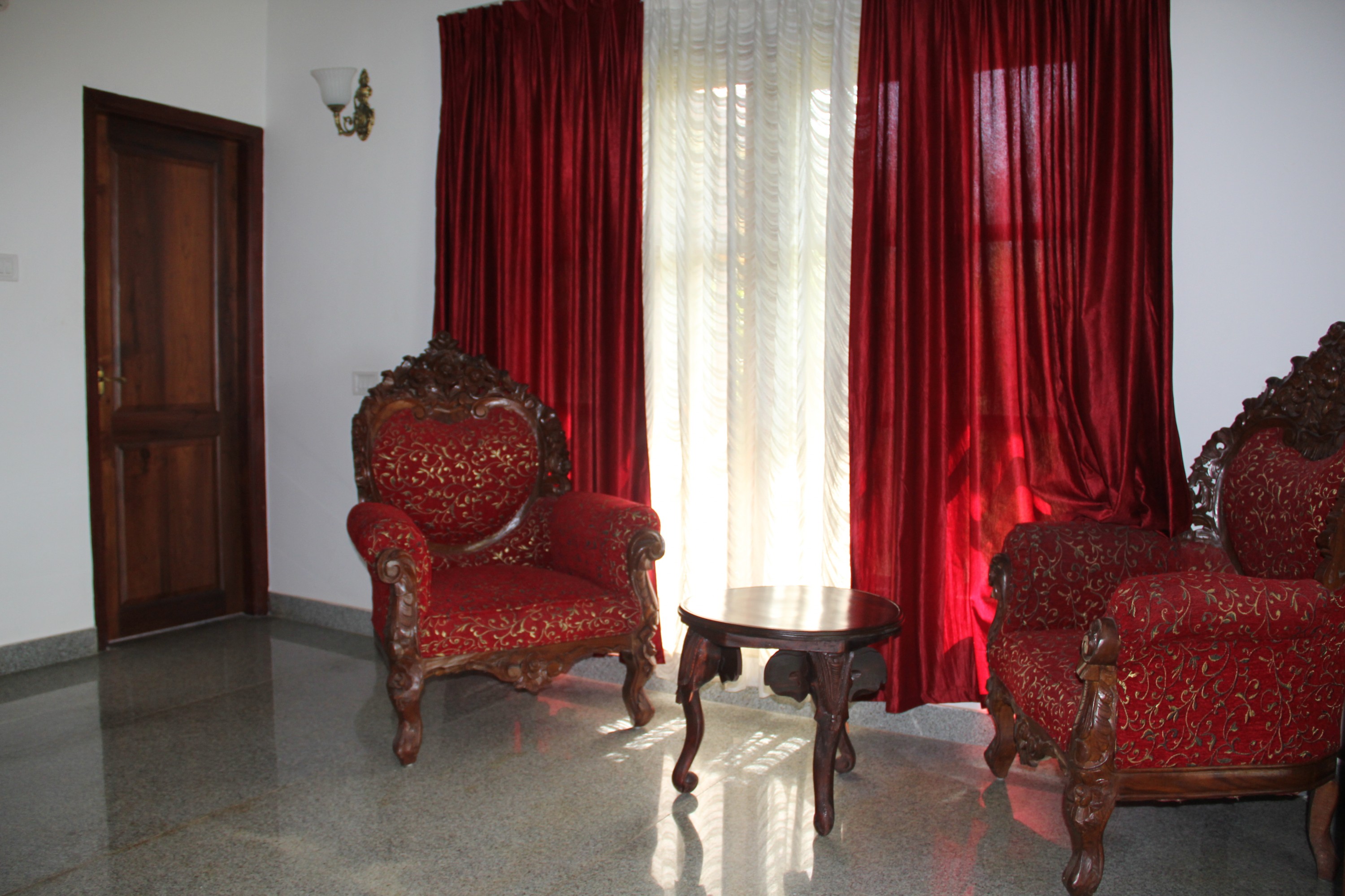 На другом конце комнаты опять напольные окна у которых стоит антикварный журнальный столик и кресла ему под стать.