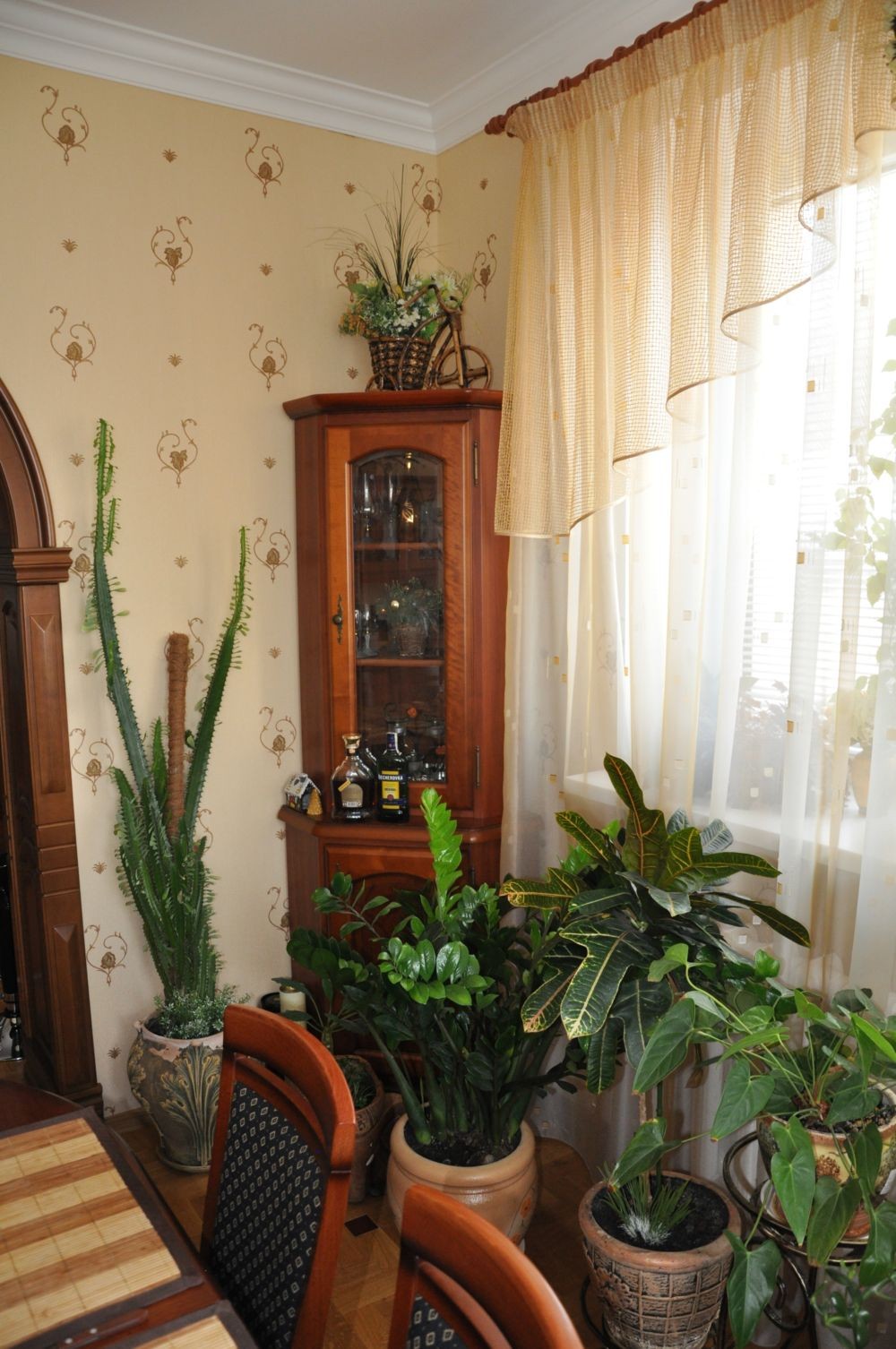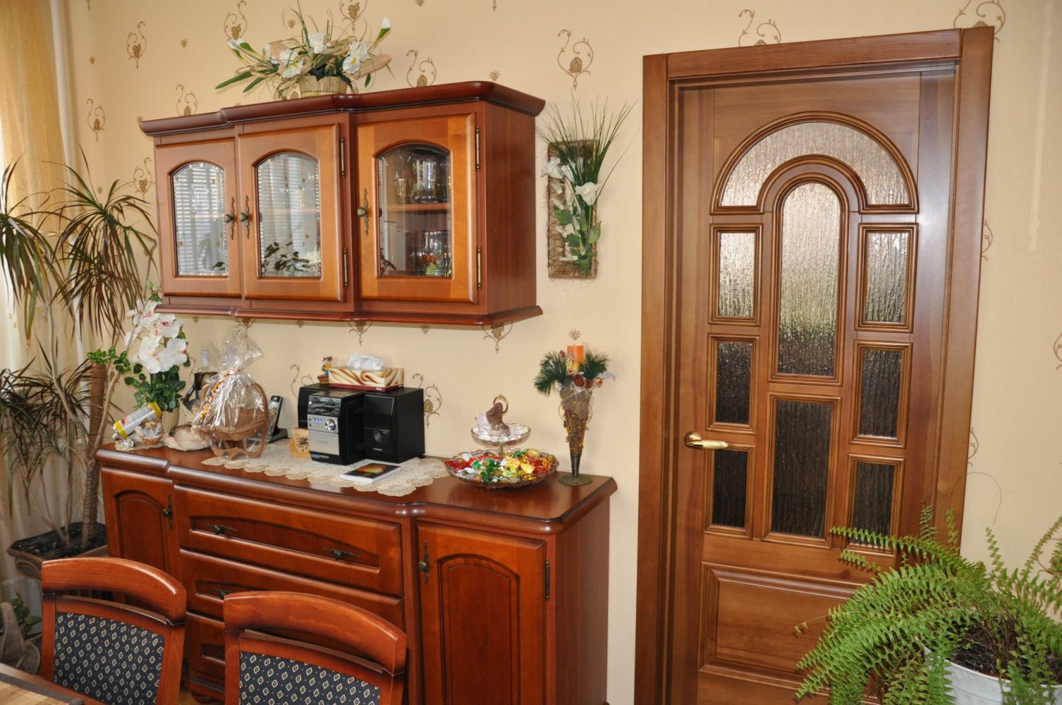 Шкафы и полки для красивой посуды - непременный атрибут любой столовой. В тех же целях можно использовать красивый бар с бутылками.
