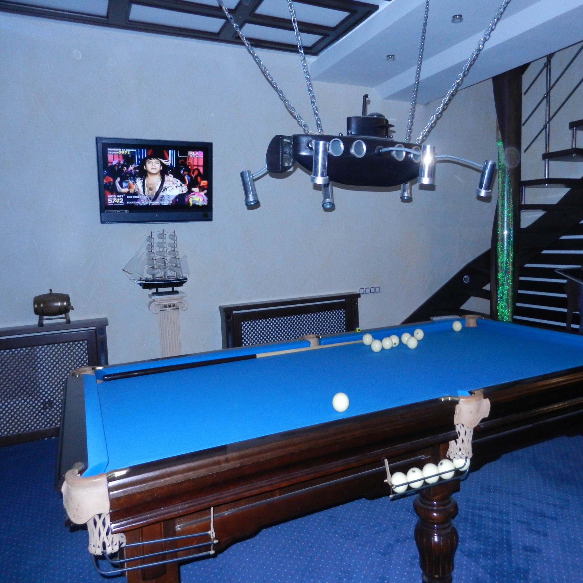 Интерьер фото / Наши интерьеры - квартиры / Гостиные / Бильярдная комната в морском стиле / Бильярдная комната в полуподвальном помещении