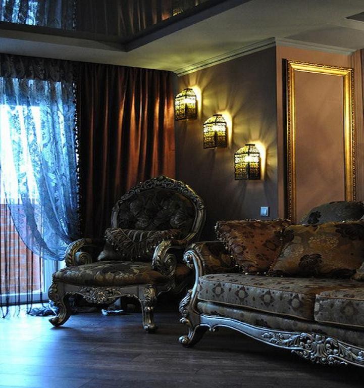 Интерьер фото / Наши интерьеры - квартиры / Гостиные / Гостинная (+кухня) в темно-светлах тонах / Три фонаря
