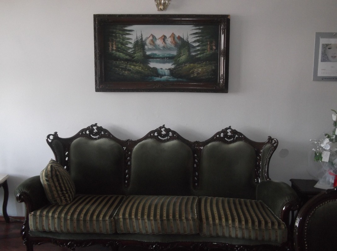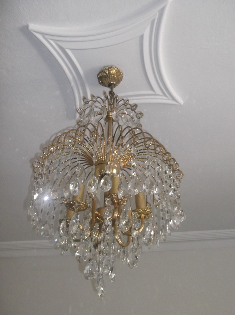 Люстра подбиралась под общий вид всей гостиной. Выполненна она в старинном стиле. По моему мнению, подобрано было очень удачно.