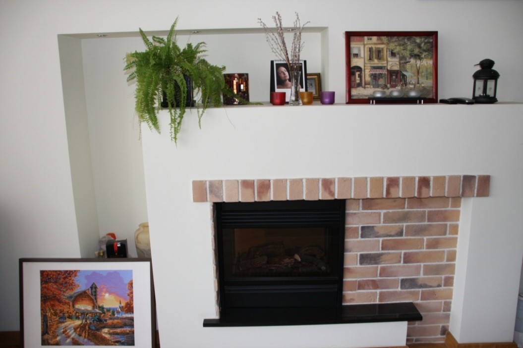 Стена, граничащая с другим помещением, оформлена электрическим камином и нишей. Декорирование стен пока в процессе осознания.