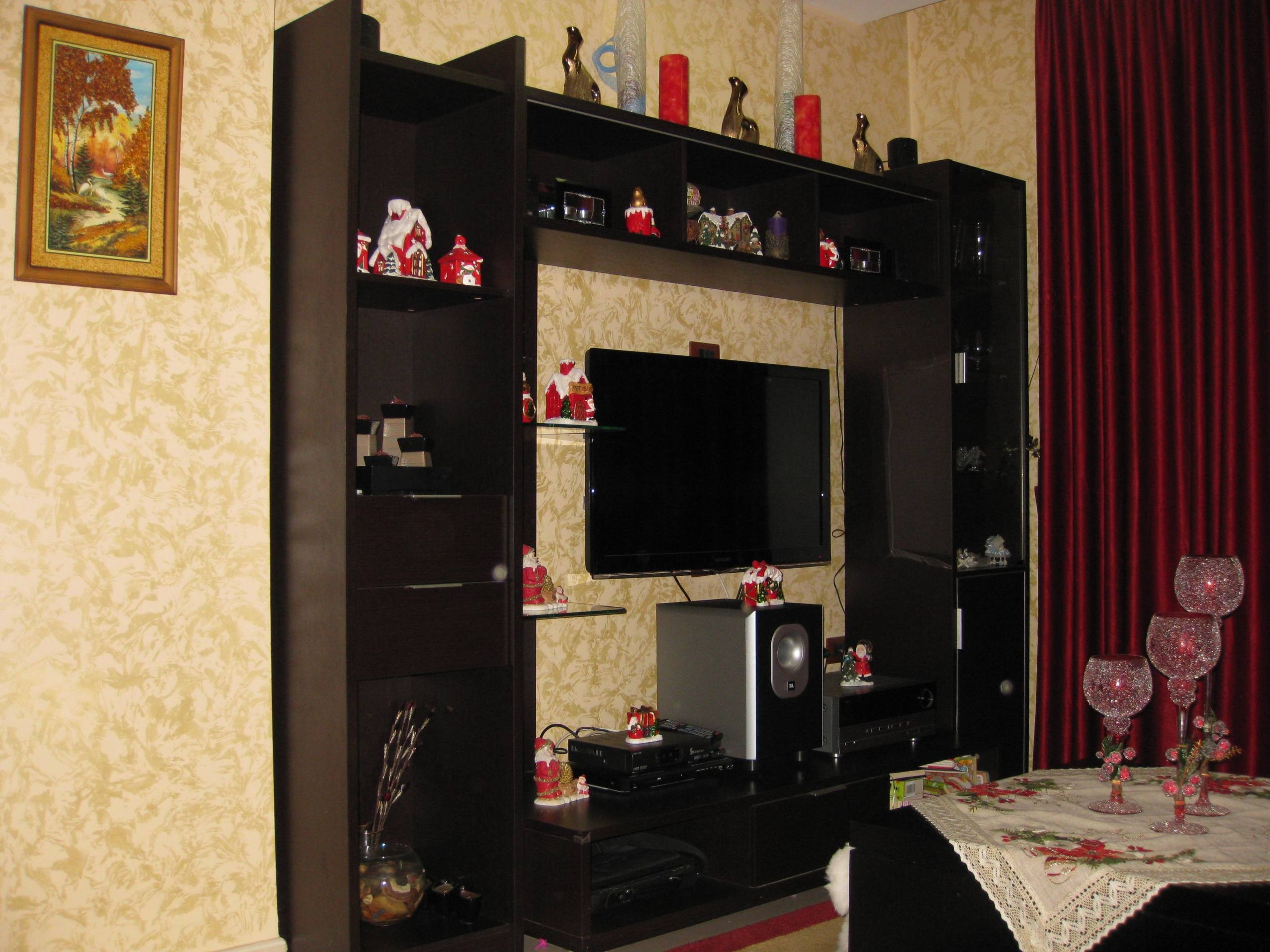Телевизор - центр всеобщего внимания. Выбор стенки был сложен. Купили понравившеюся, забыв проверить ее размеры. Повезло - вписалась с точностью в проем.