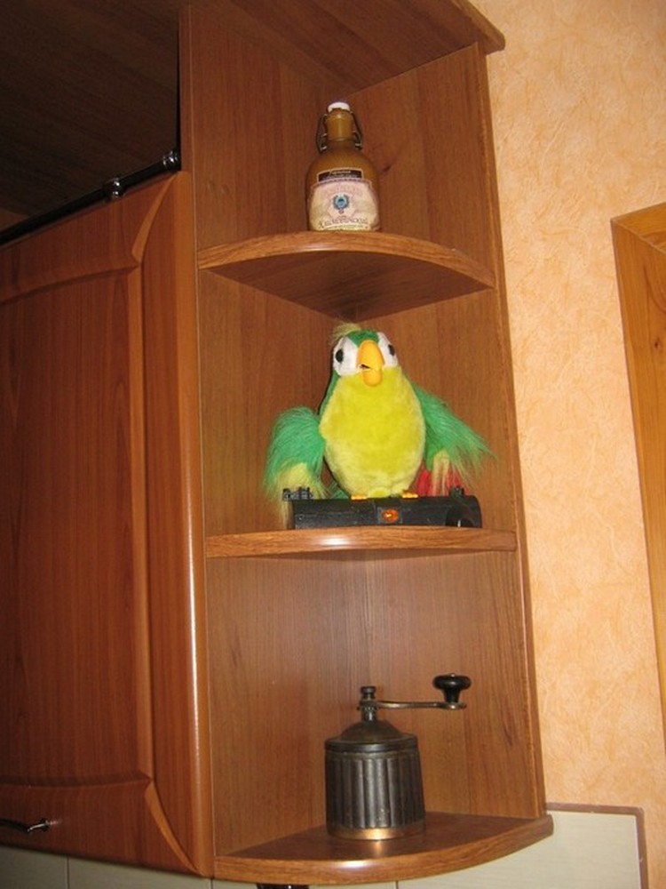 На полочке поселились красивая бутылочка, попугай-повторяшка и кофемолка под старину, выпущеная в годах этак 90-х.