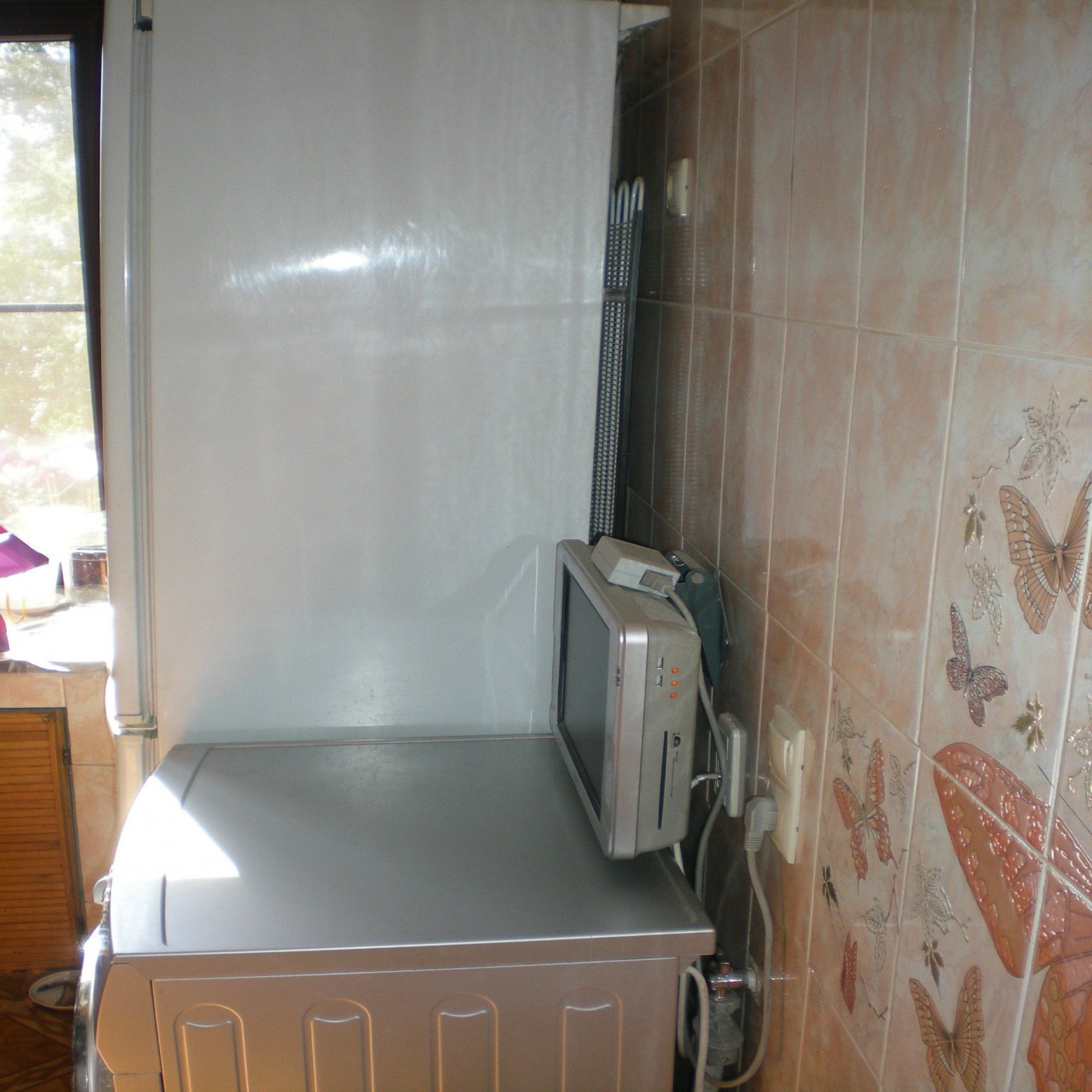 Самое сложное на маленькой кухне - это обеспечить ее по возможности максимальное функционирование. Поэтому решено было разместить следующим образом. При входе на кухню мы увидим размещенный в углу холодильник и стиральную машину.