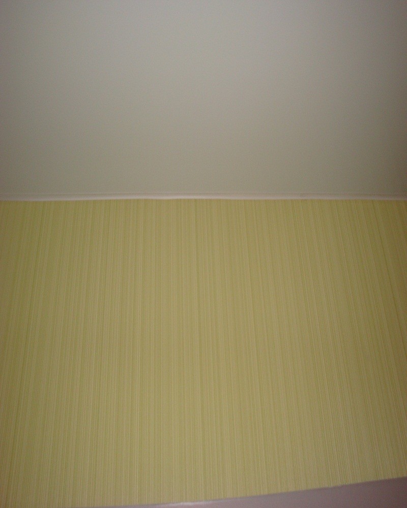 Натяжной белый потолок. Белые цвета кухни не дают пространству сужаться, они освежают обстановку, разбавляют коричневые оттенки.