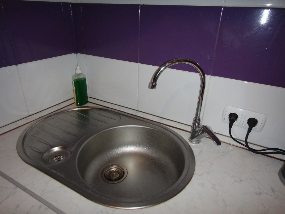 Небольшая гордость нашей кухни - мойка. Мы сознательно купили круглую и вписали ее в угол - ранее она была в другом месте. За счет того что сам кран мы врезали в поверхность стола - нам удалось достичь большой площади для складирования свежевымытой посуды