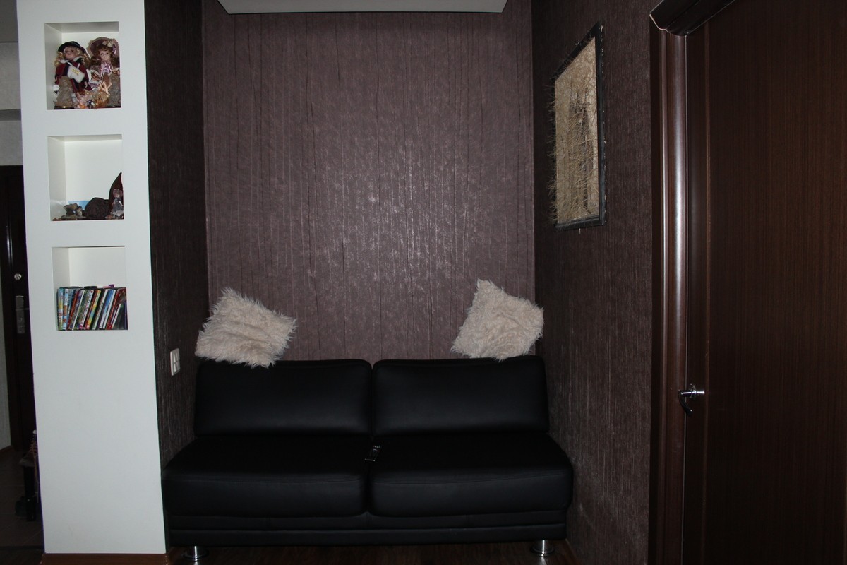 А вот и он! Диванчик спрятан,чтобы можно было отдохнуть пока кто-то готовит вкусный ужин. В самой перегородке окошки,для украшения комнаты.