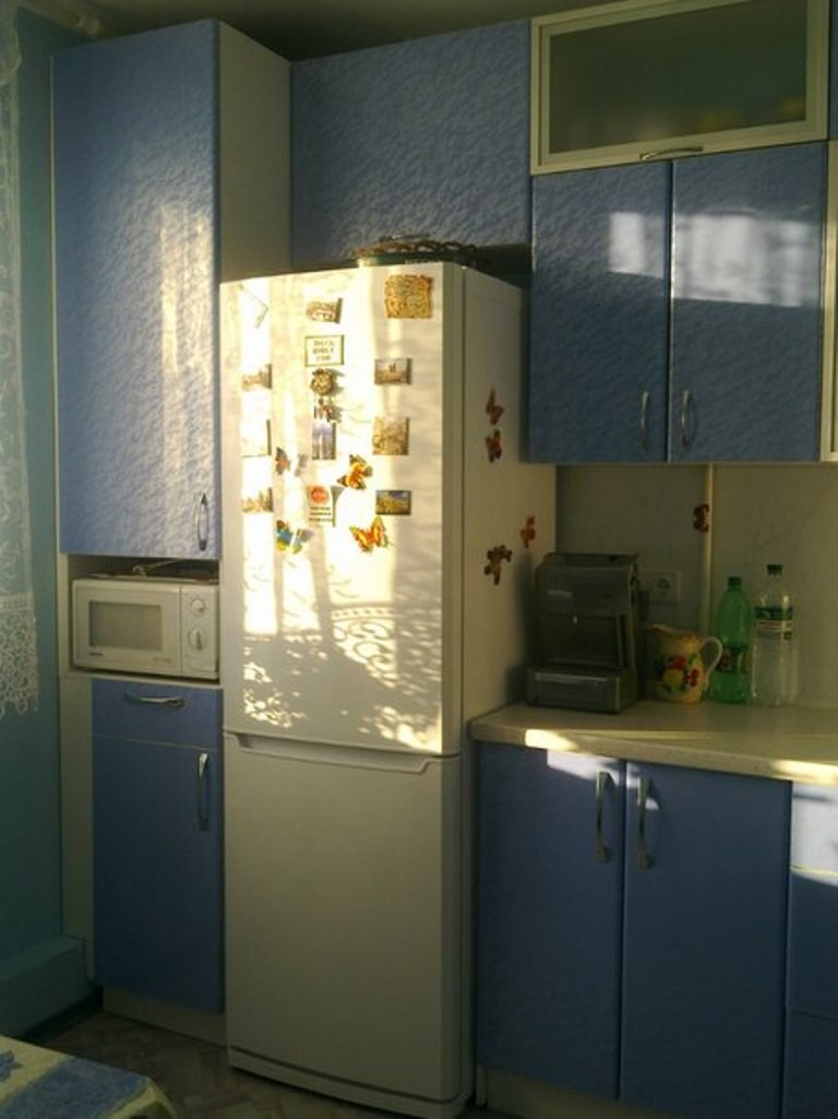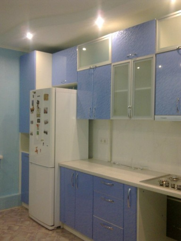 Рабочую стенку освещает лампочка,которая прикручена снизу центрального ящичка.Сзади нее стоит плитка.