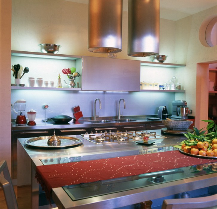 Интерьер фото / Наши интерьеры - квартиры / Фото кухни / Хай-тек в интерьере кухни / Подсветка полок