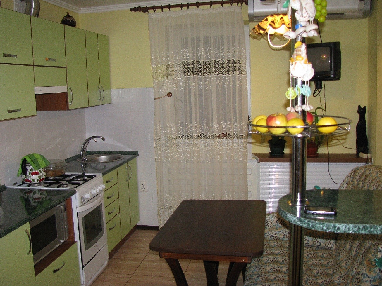 На полу кухни - плитка.Да!Посуда, упав на пол - бьется вдребезги,но как приятно по нему ходить!И вообще керамический пол -это супер.