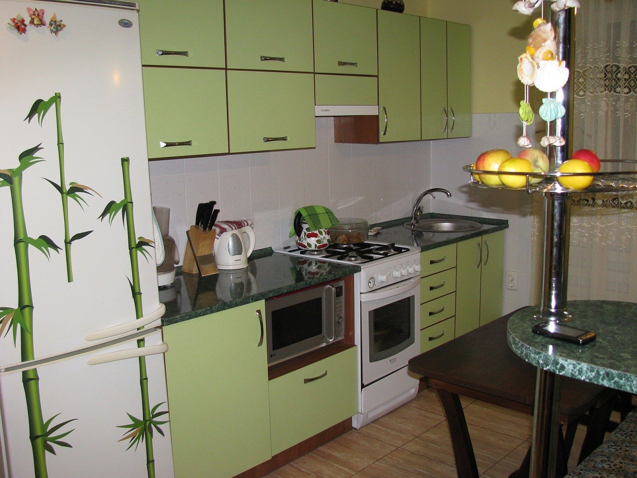 Диванчик тоже у нас был.Обегала все тканевые магазины,но нашла! Нашла подходящую ткань для диванного покрывала в тон кухни.