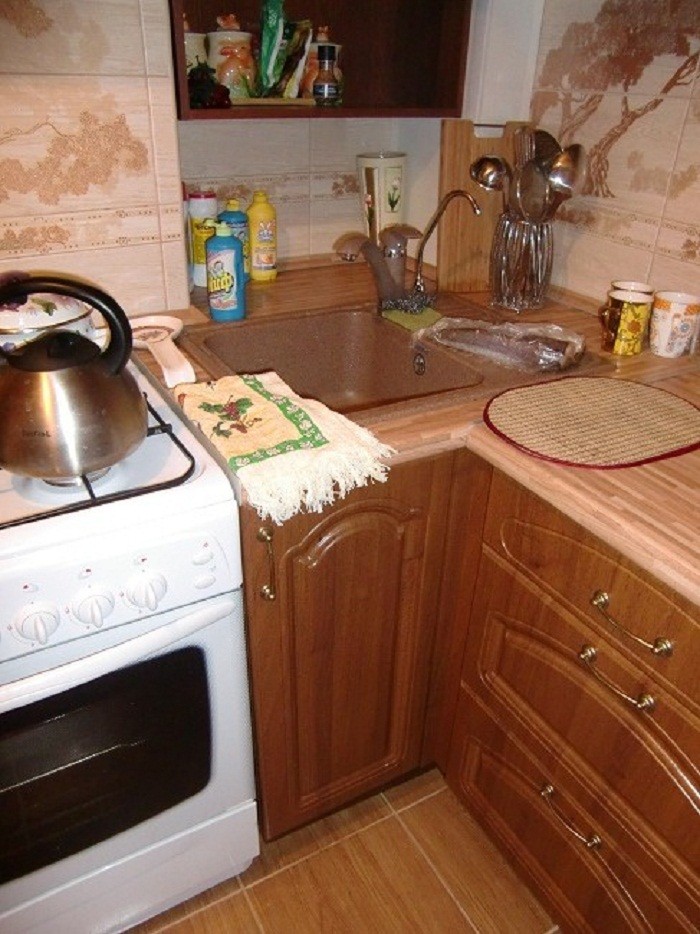 Вы видети углубленность? Вот эта ниша. Сколько же мы намучались не зная что е делать с ней. Искали примеры интерьера и решений, куда же ее спрятать, но так ничего и не нашли. Спасибо что сейчас нашла этот сайт, где можно посмотреть примеры интерьера с фото. Думали уже, что может заложить ее совсем кирпичами. Но пришли к выводу что это свободное место, и от него нельзя отказываться. Вот так и придумали, как видите на фото. И места под мойкой полно, и все сделано аккуратненько.