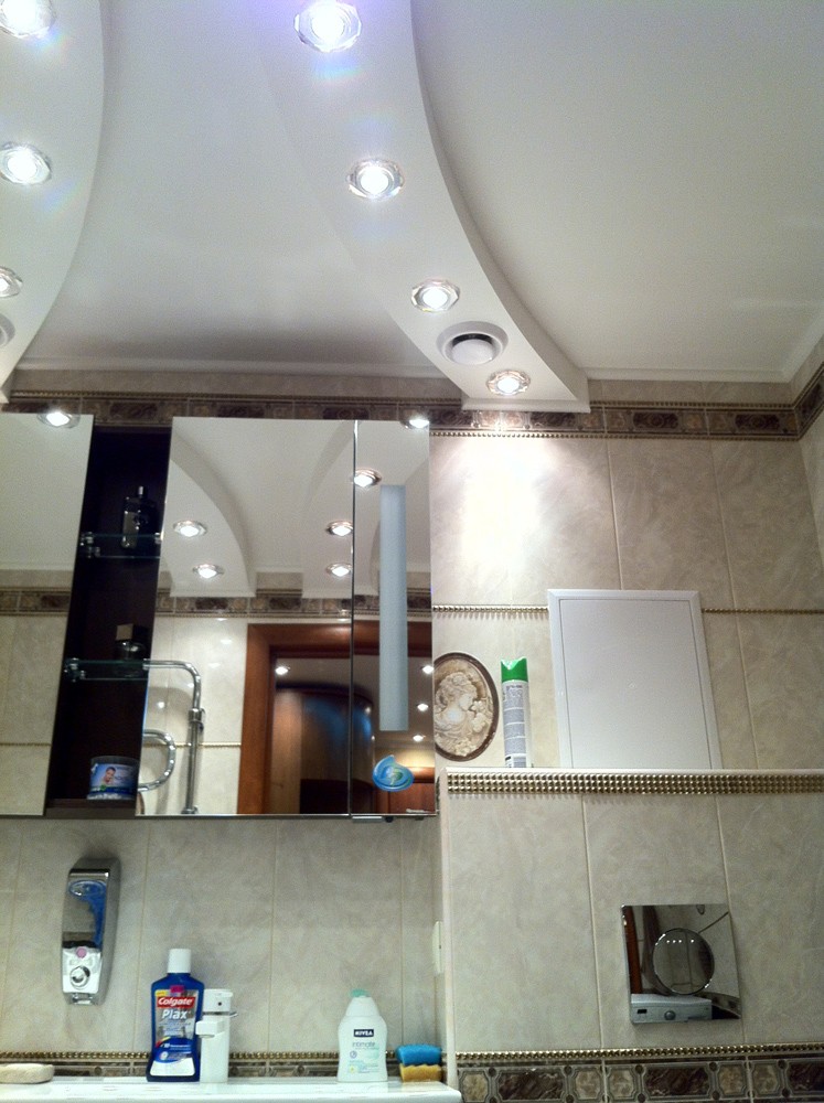 Интерьер фото / Наши интерьеры - квартиры / Совмещенные санузлы / Просторно и функционально / Потолок