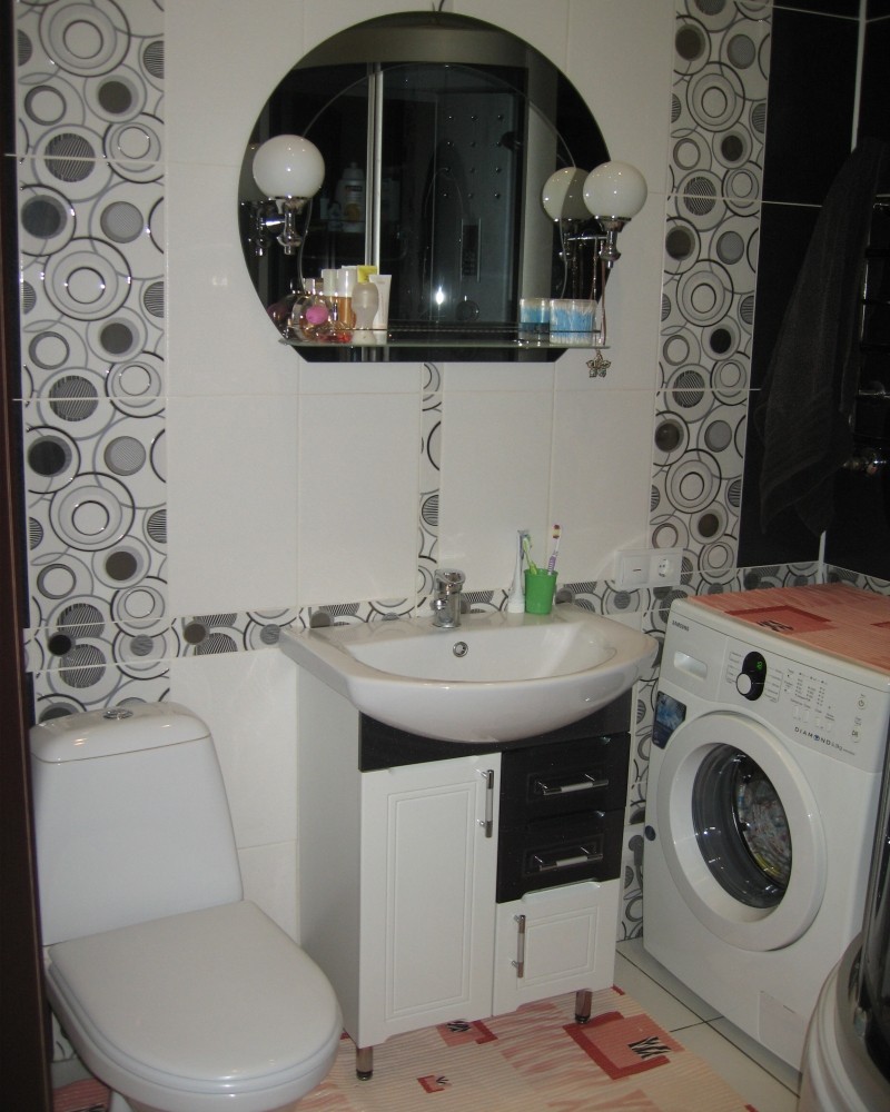 Интерьер фото / Наши интерьеры - квартиры / Совмещенные санузлы / Совмещенный санузел в черно-белыом цвете / Общий вид