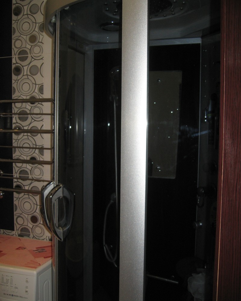 Интерьер фото / Наши интерьеры - квартиры / Совмещенные санузлы / Совмещенный санузел в черно-белыом цвете / Душевая кабинка