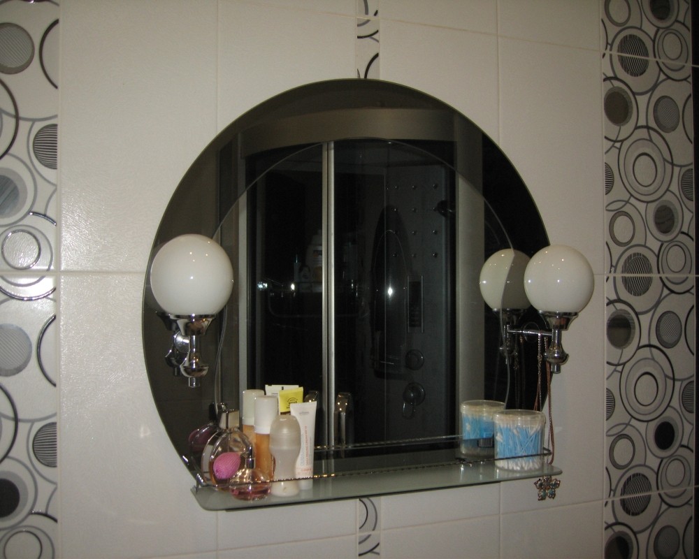 Интерьер фото / Наши интерьеры - квартиры / Совмещенные санузлы / Совмещенный санузел в черно-белыом цвете / Зеркало