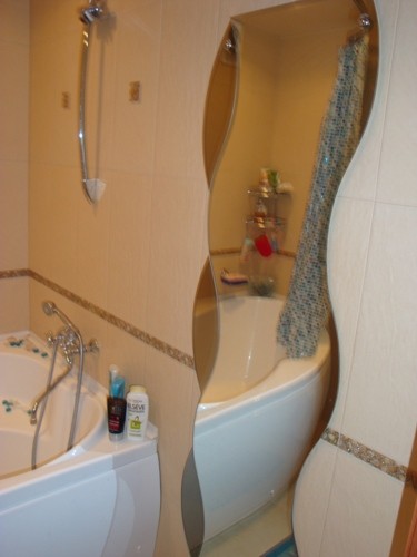 Здесь изображено красивое зеркало. Оно дополняет красоту интерьера в целом.