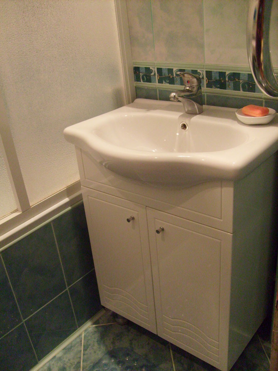 Интерьер фото / Наши интерьеры - квартиры / Ванные комнаты, фото ванной / Ванная комната в панельном доме / Тумба - умывальник