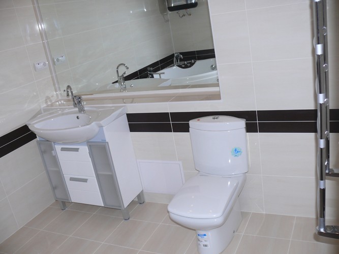 Мы остались довольны своей ванной комнатой . Здесь светло и просторно . Все лежит на своих местах , нет ничего лишнего . Никаких нагромождений и раздражающих цветов . Возможно просто , но в тоже время всетаки стильно !