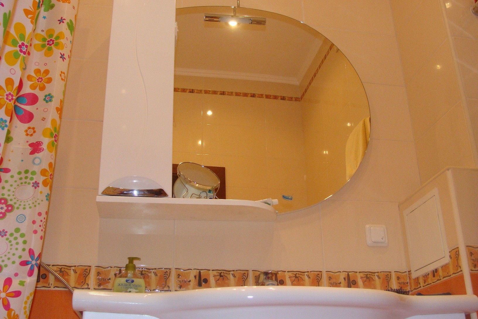 Интерьер фото / Наши интерьеры - квартиры / Ванные комнаты, фото ванной / Моя оранжевая ванная / Места на умывальнике хватает всем!
