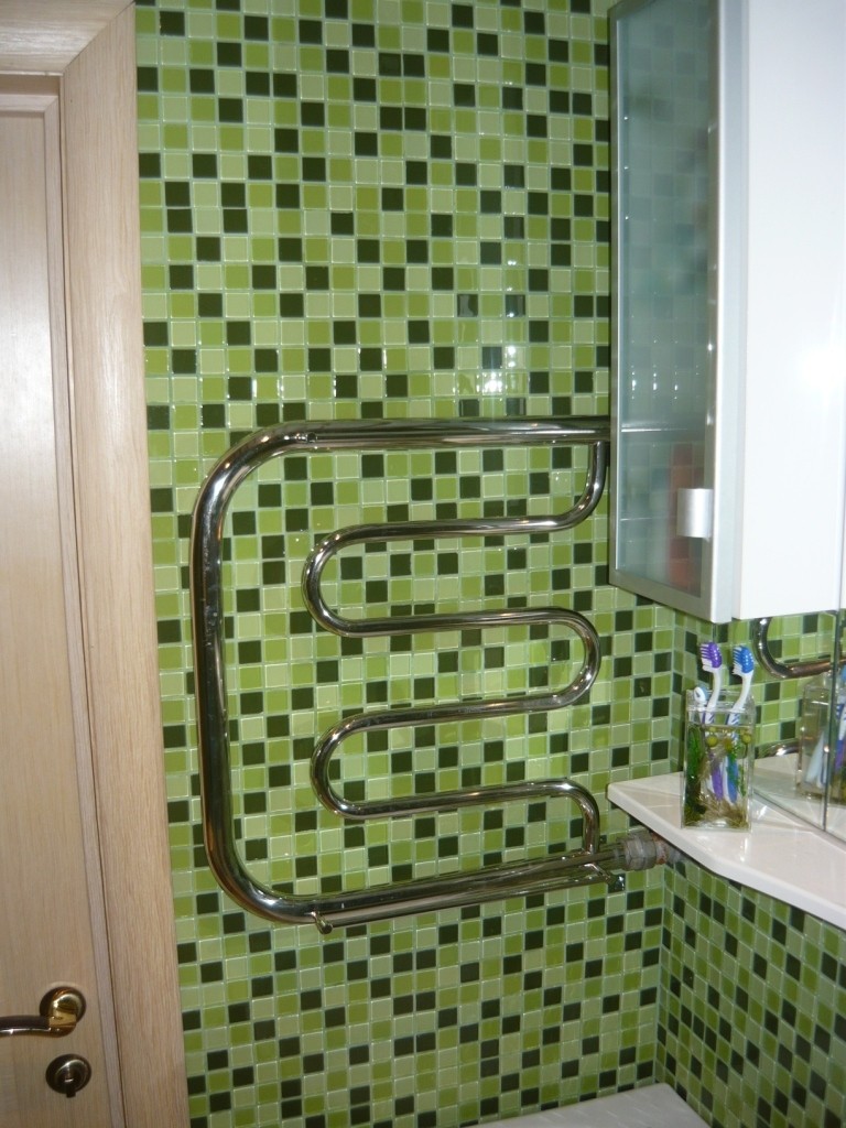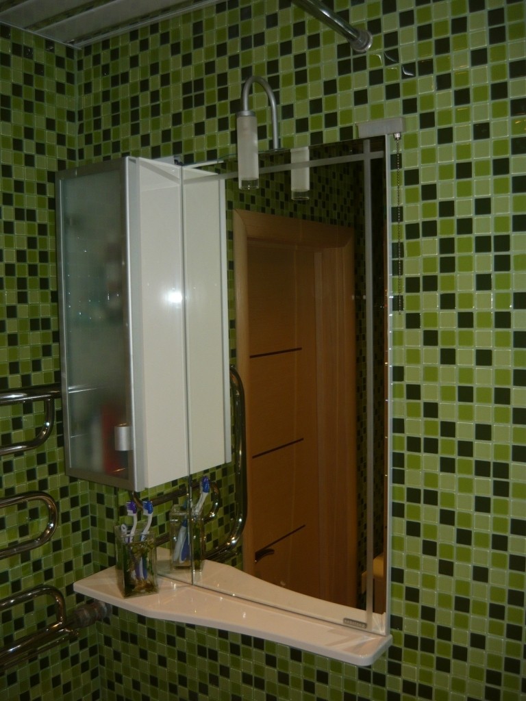 Интерьер фото / Наши интерьеры - квартиры / Ванные комнаты, фото ванной / Мозаика / Зеркало со светильником