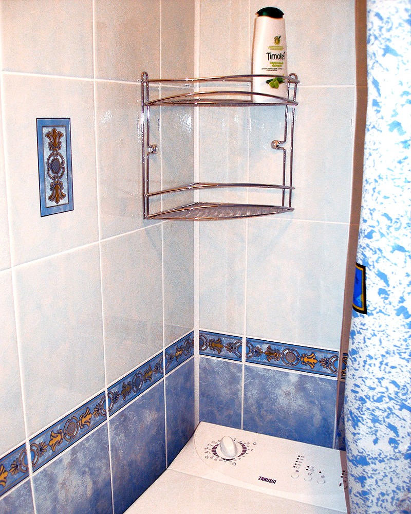 Интерьер фото / Наши интерьеры - квартиры / Ванные комнаты, фото ванной / Ванная в панельной пятиэтажке / Полочка над стиральной машинкой