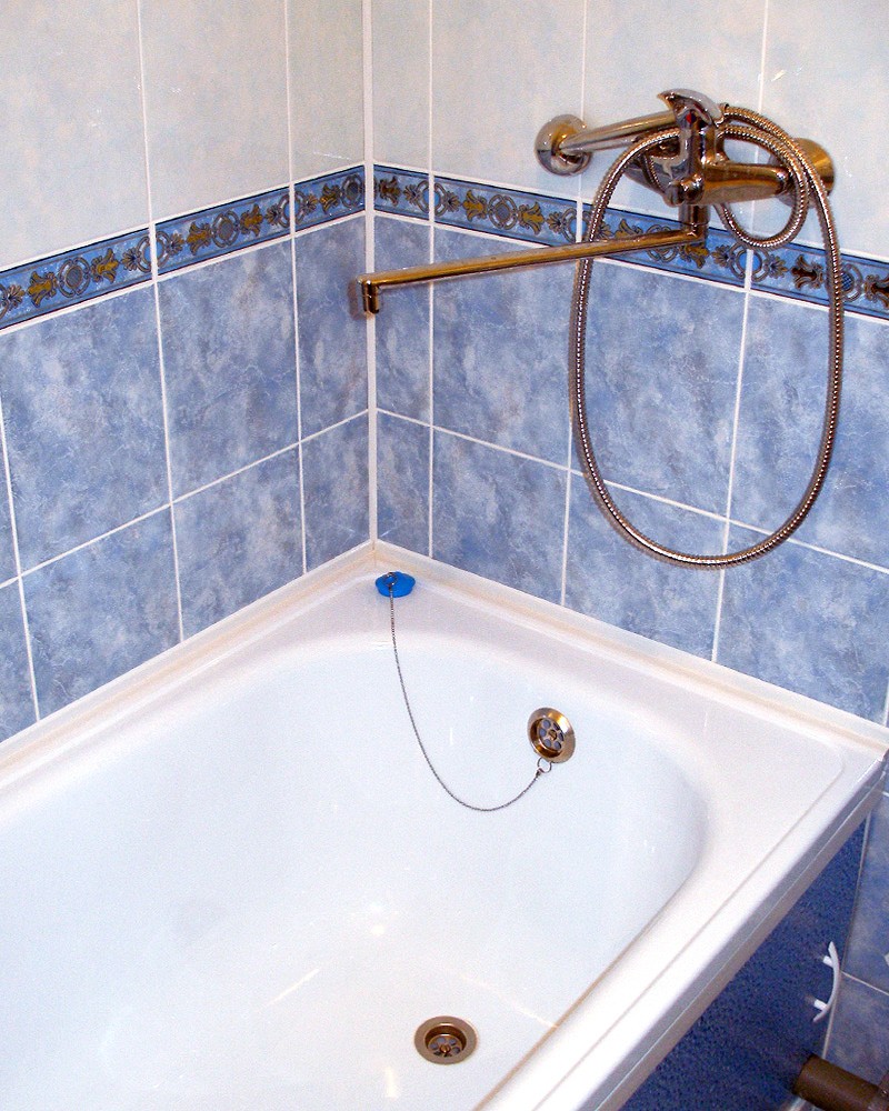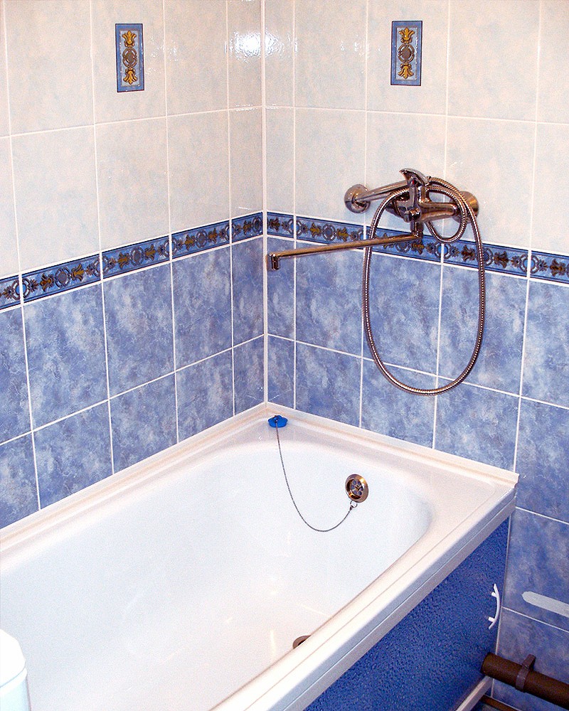 Интерьер фото / Наши интерьеры - квартиры / Ванные комнаты, фото ванной / Ванная в панельной пятиэтажке / Общий вид, - декоры и смеситель.