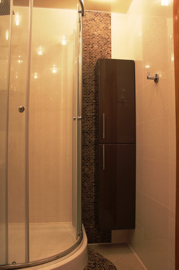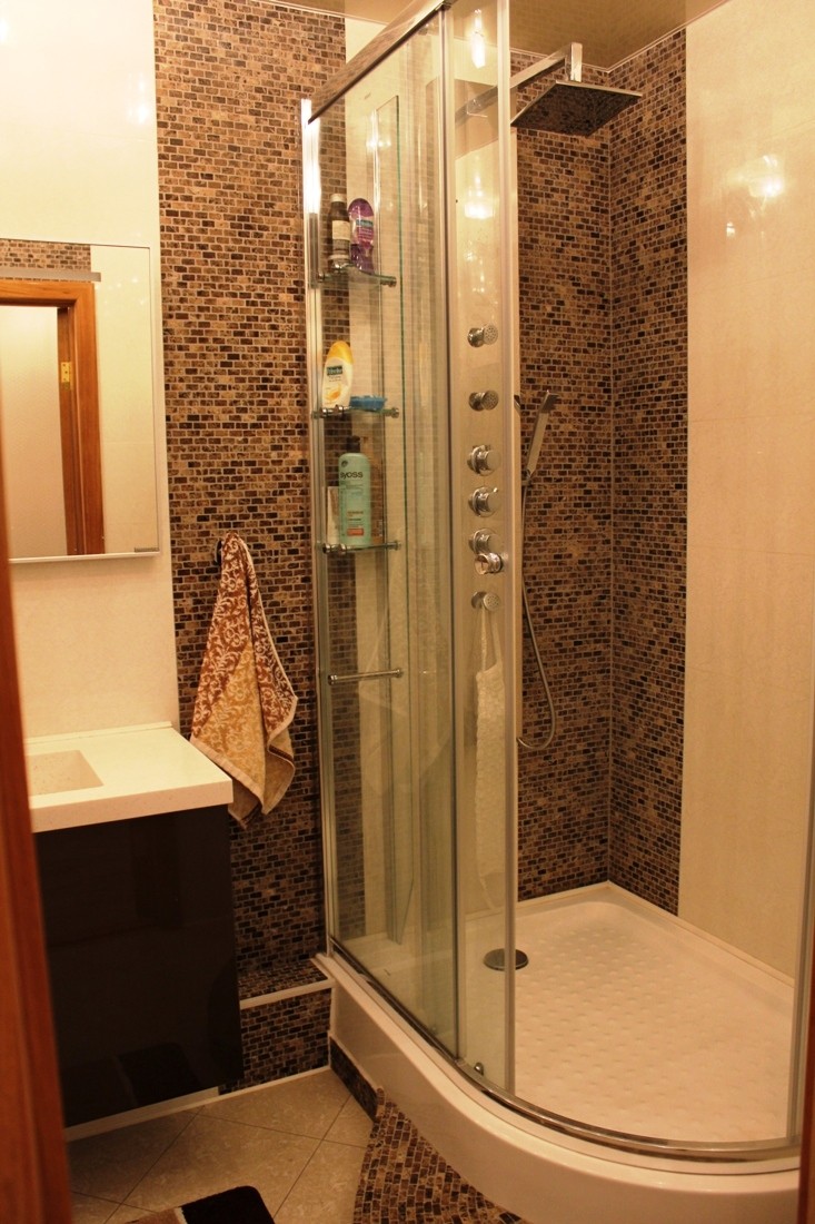 Интерьер фото / Наши интерьеры - квартиры / Ванные комнаты, фото ванной / Итальянская мозаика в типичной ванной комнате / Душевой уголок