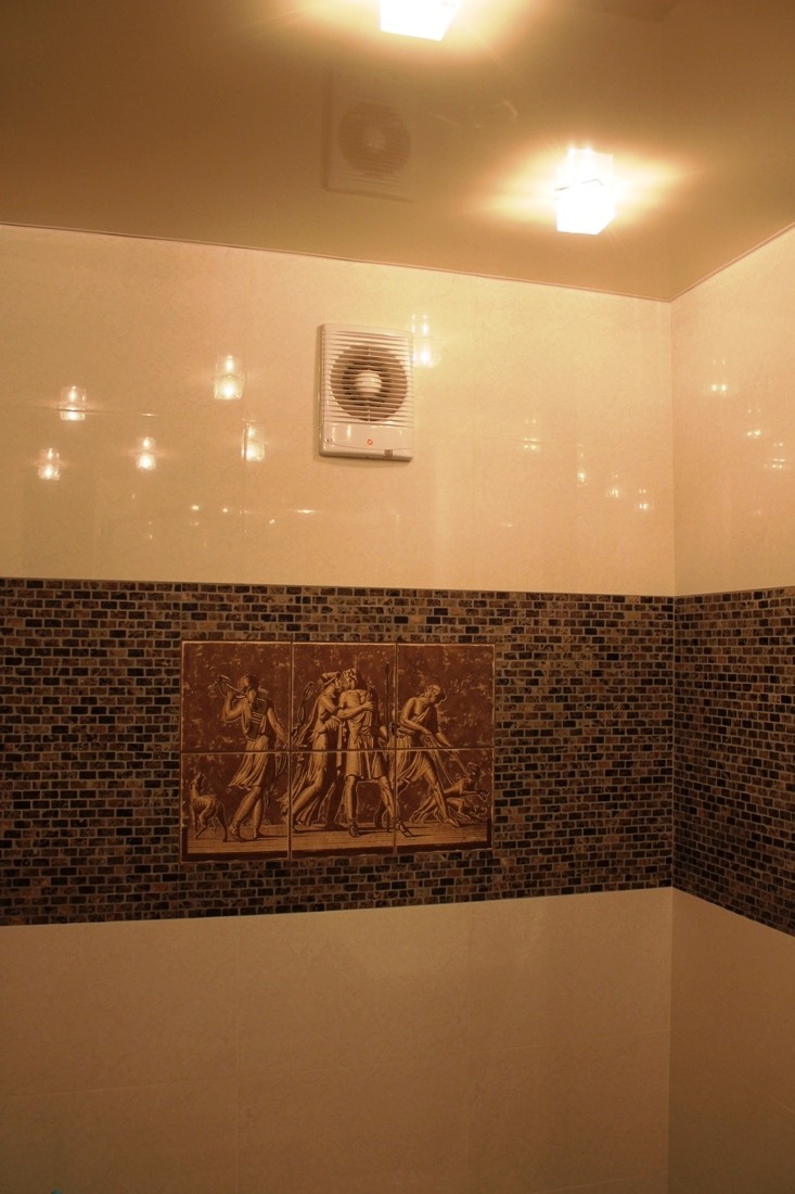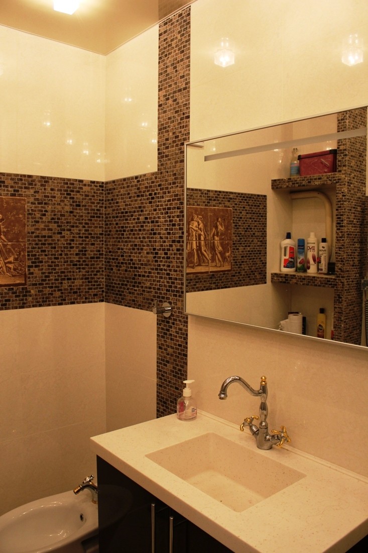 Интерьер фото / Наши интерьеры - квартиры / Ванные комнаты, фото ванной / Итальянская мозаика в типичной ванной комнате / Мойка и биде