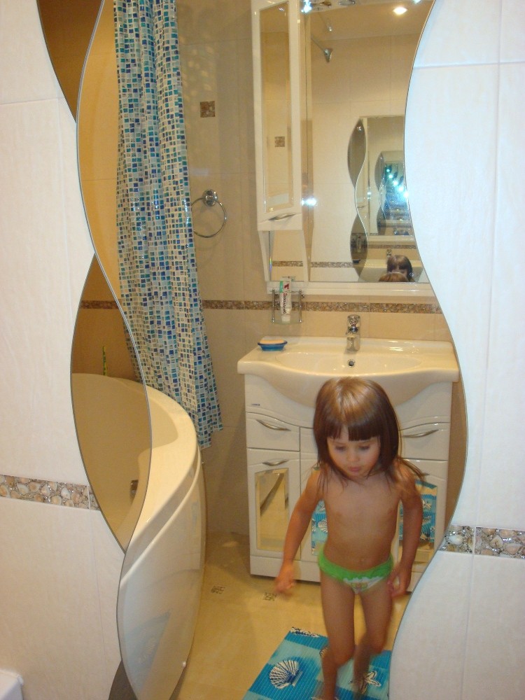 Форма зеркала очень нравится(кстати зеркала в ванной придают ей визуально большие размеры)