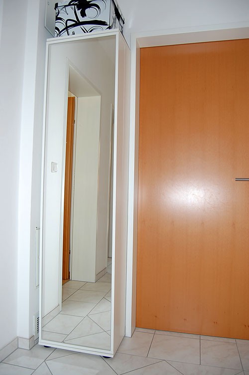 Из-за батареи, которая висит на стене, мы долго не могли придумать, как быть с мебелью - ведь шкаф из-за батареи к стене не встанет! Решение нашли вот в такой стойке! Конечно, не так вместительно, как шкаф, но для семьи из 2-х человек - достаточно. :)