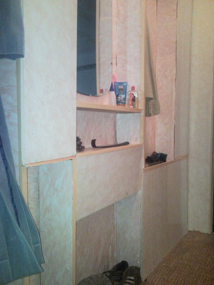 Интерьер фото / Наши интерьеры - квартиры / Фото комнат / Стеновые панели в коридоре и в ванной / Стена с нишами