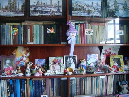 Интерьер фото / Наши интерьеры - квартиры / Фото комнат / декорирование книжного шкафа мелочами / книжный шкаф