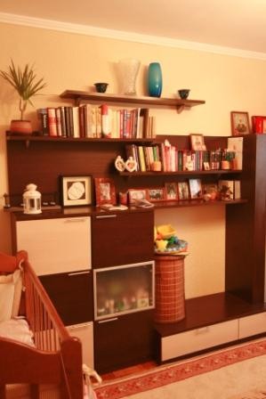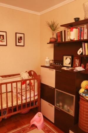 Так же поменяли пол на новый паркет, теперь у нас хороший пол и новая кроватка для ребенка.