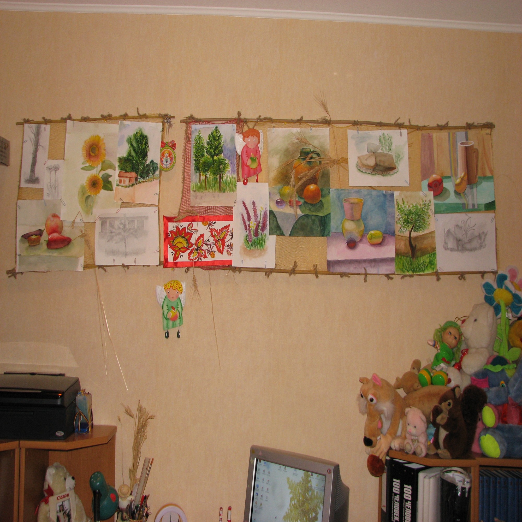 моя сестра- начинающий художник. И работ накопилось столько, 4то пришлось занять всю стену планшетами)